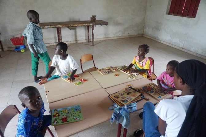 David is na een lange periode van ziekte weer terug op school. En dat is heel fijn! Dat geeft meer rust en stabiliteit. We hebben voor Jainaba nu een apart lokaal ingericht voor de 5 jongste kinderen. Tot de pauze leren ze gebarentaal, daarna mogen ze spelen of kleuren.